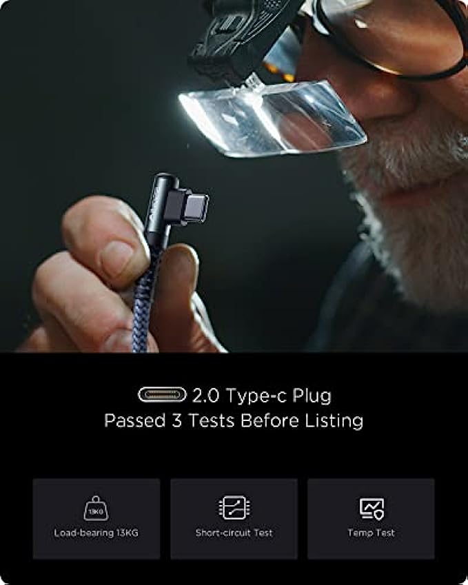• [Upgraded Exclusive Right Angle Design] This right angle type c charging cable fast charge with an innovative 90 degrees " L " design. It's user-friendly design more convenient and comfortable for playing games, watching videos, reading e-books when you charging. 【 NOTE: The thickness of the compatible mobile phone case charging port is 5.5mm.】