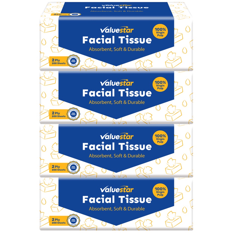 ValueStar Facial Tissue Soft Pack, 2-ply, 4 x 200 sheets [Bundle of 3]
