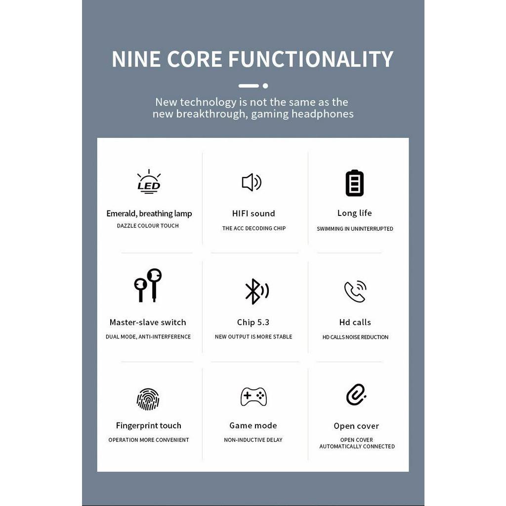 Best Feature(s):? Performance:? Value For Money:? Hi - fi audio , portable true wireless earbuds wireless headset , v 5.3 Bluetooth , bq 40 , made in China , clear and stereo sound , advanced biological diaphragm brings superior sound quality , silver casing , power input dc 5 v , charging time 1 - 2 hours , delivery arrived within a reasonable time frame ,