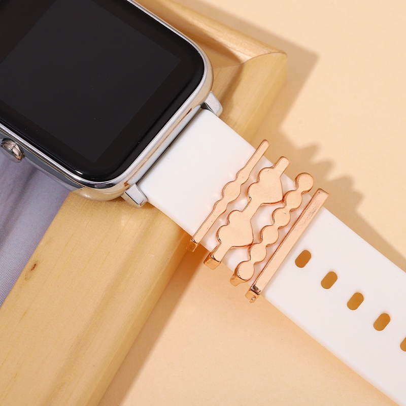Watchband Set Letter Heart Pendant Silicone Band Decorative Jewelry Iwatch