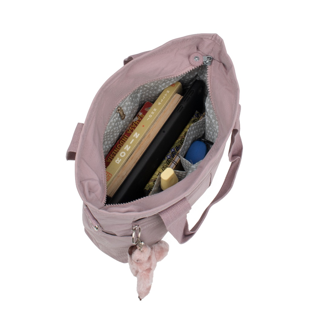 Lovito Casual Plain Basic Zipper Shoulder Tote Bag for Women LFA06035 (Grey/Pink/Black)